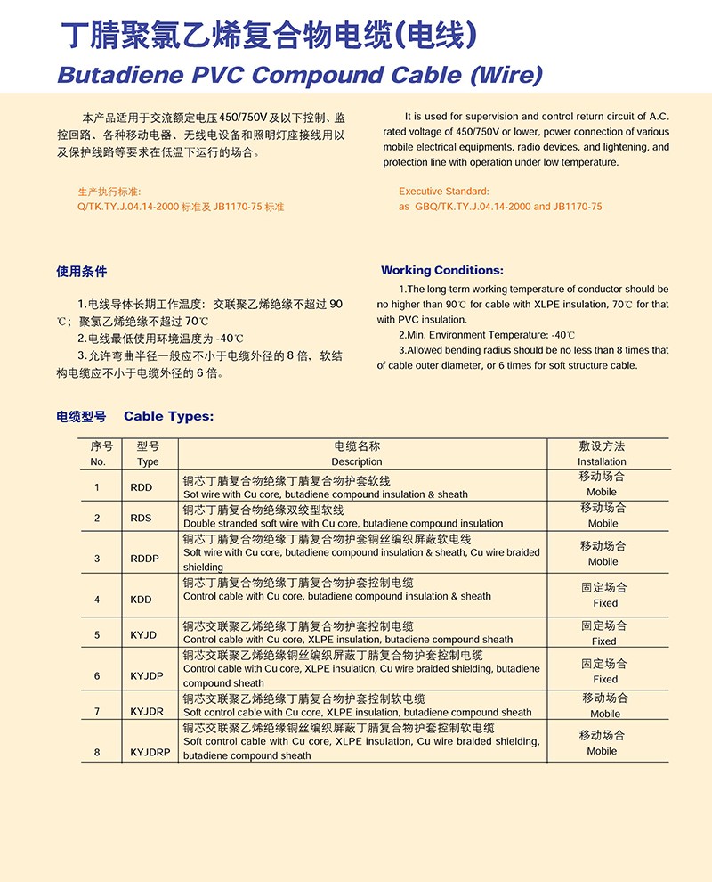 丁腈聚录乙烯复合物电缆(电线)的产品详细介绍: