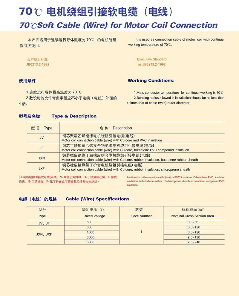 70℃机电绕组引接软电缆(电线)的产品详细介绍: