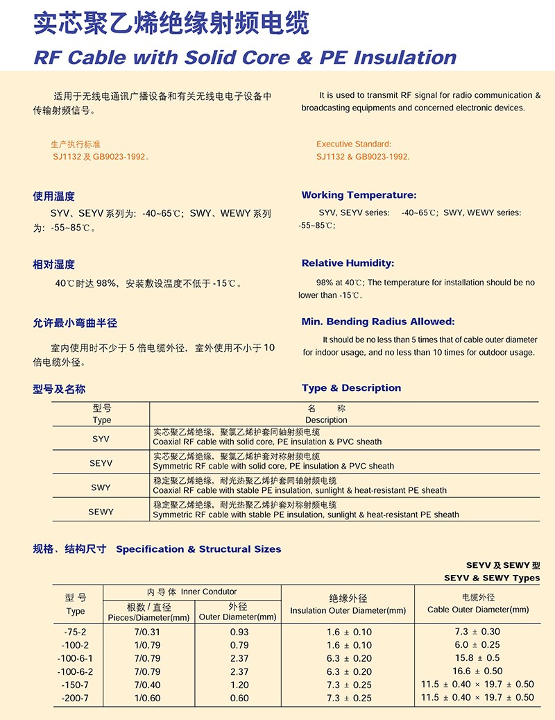 实芯聚乙烯绝缘射频电缆的产品详细介绍: