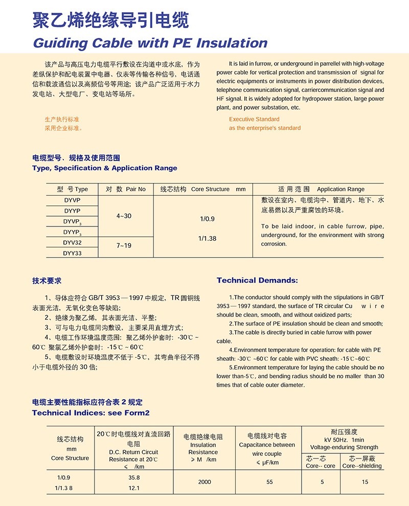 聚乙烯绝缘导引电缆的产品详细介绍: