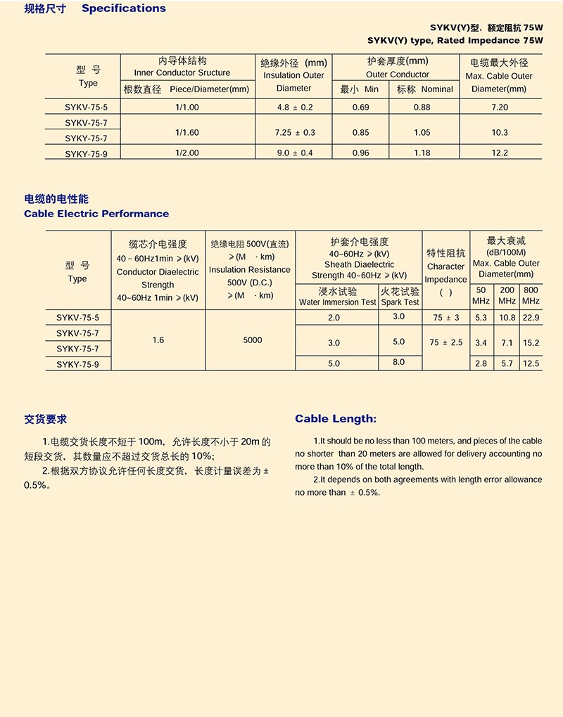电缆分配系统用纵孔聚乙烯绝缘同轴射的产品详细介绍: