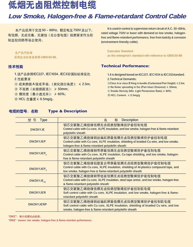 低烟无卤阻燃控制电缆的产品详细介绍: