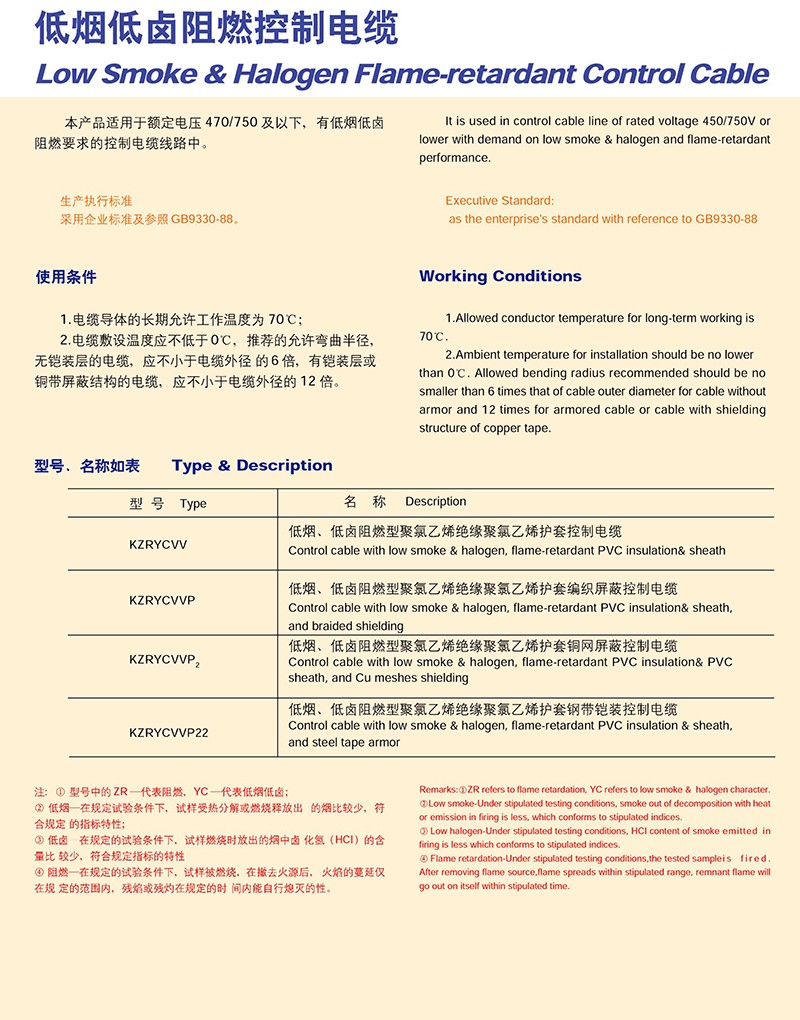 低烟低卤阻燃控制电缆的产品详细介绍: