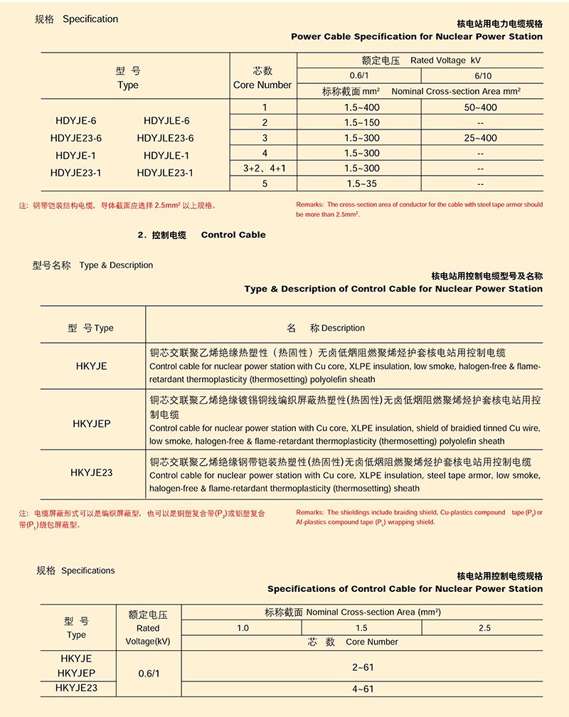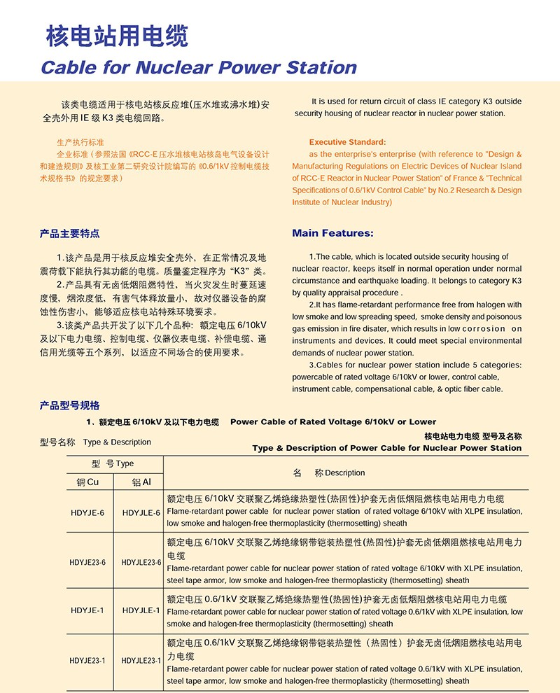 核电站用电缆的产品详细介绍: